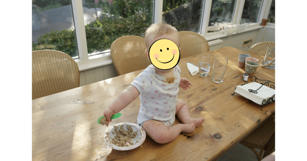 5. Give up the spoon. If all else is failing, the time may have come to give up trying to keep any part of her, you, the high chair, the floor, the entire kitchen, etc, clean and let the baby take control. Give them the food, make sure it’s safe and let them explore. One evening last week L refused point blank to eat ANYTHING I offered her, from her favourite Ella’s Kitchen pouch to the corn puff snacks she likes and even the all-else-fails yoghurt. She also made it quite clear that the highchair just wouldn’t do. So I took her out, stripped her to her vest and sat her on the table with a bowl of Weetabix. No, not as much of it made it into her mouth as I would have liked, but squishing her fingers into it certainly cheered her up.