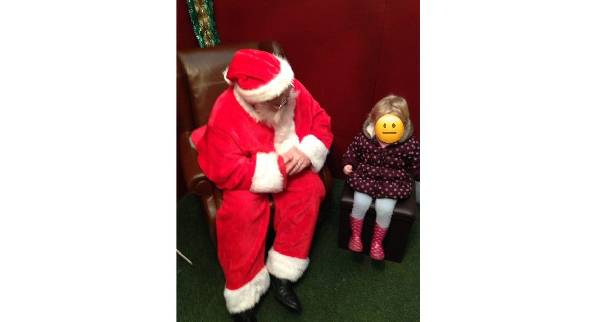 I took my toddler to see Santa this week. She was pretty excited about the prospect of meeting “Fada Wissmus” beforehand, but when we actually stepped into the grotto she went completely silent, stared straight ahead and pretty much refused to acknowledge the poor guy with the red suit and the passably good beard. There were a lot of one-sided questions, furtive attempts at jollity and a decidedly awkward moment when L decided she was more interested in trying to steal Santa’s little decorative reindeer than receiving her gift. Sure, the whole concept of Father Christmas is a bit much to expect from a two-year-old, but at least we got some fairly ridiculous photos and a rather nice jigsaw puzzle out of it.
