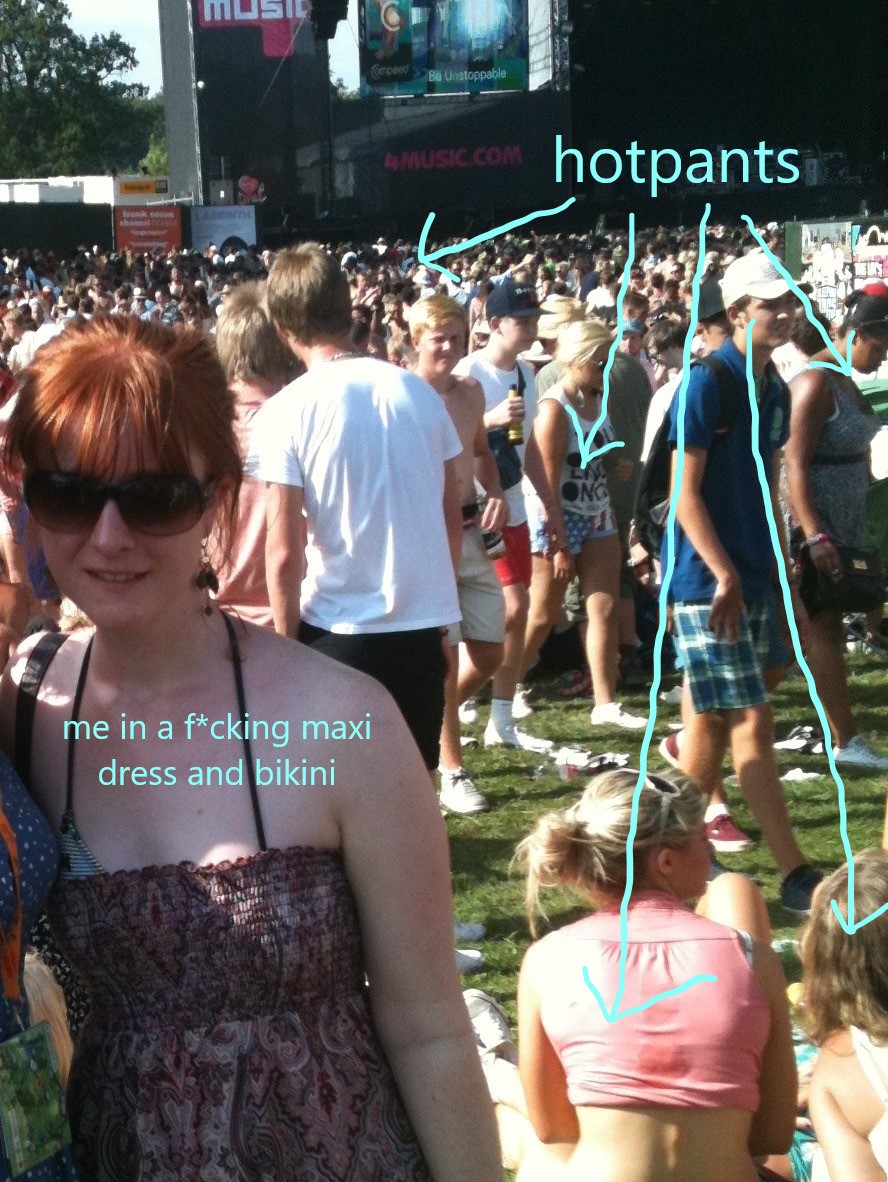 Far stronger memories include the surprisingly heavy addition the dozen or so bottles of WKD rolled into my tent and sleeping bag made to my camping rucksack as we traipsed across a really long field from the car-park to the campsite of NASS in 2004. My friend and I at V-Festival 2005 getting completely freaked out while camping alone in a field of Drunk Twats and calling her boyfriend and his mates who drove for five hours to stage a heroic gate-crash rescue for the remainder of the weekend. Rocking up to V-Festival 2012 in my newly-purchased boho maxi dress and feeling the hideous realisation that I’d completely missed the dress-code of arse-grazing denim hotpants and wellies (the latter despite it remaining a stubborn 30 degrees all weekend without a scrap of mud in sight). Hard to say whether the lowest point of that particular weekend was the affect of the heat on the already-rancid festival toilets, the subsequent discovery on one such visit that I had started my period or the unfortunate vomiting-in-shared-tent incident. To top it all off, I had to work on the Monday afternoon (probably a press week) and my flat was having plumbing work so I couldn’t even nip home for a shower first. Still, The Killers were good. I think?