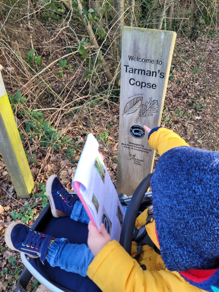 I won’t go into a step-by-step guide of the trail because half the fun is actually doing it yourself. Besides, the trail guide is so good I really don’t need to. Suffice to say it didn’t take too long to complete, B would have been perfectly able to walk the whole thing but I’d encourage any other mums of pig-headed toddlers to bring a buggy (big tyres a bonus) otherwise you’ll end up with the pocket-area-welly-gunge (IYKYK) and an aching back. I attempted a bit of TikTok-style narration but the blindingly bright sunshine meant I could not truly appreciate at the time just how terrible a perspective holding the phone at buggy-handle-level truly is*.