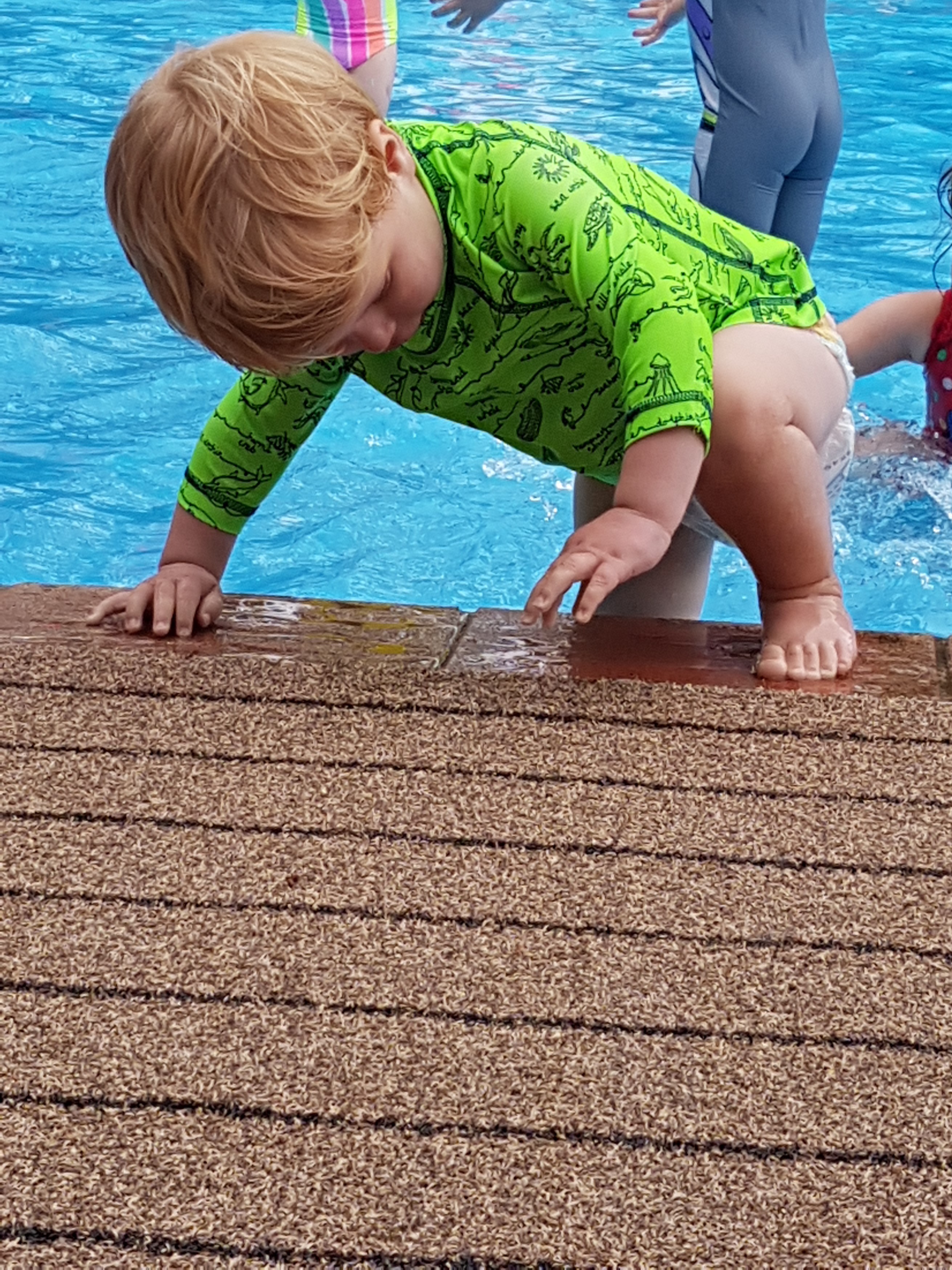 I don’t know what will happen this week. Maybe he’ll go back to the steps. Maybe we’ll carry on the small progress we’ve made… but I hope that if anyone reading this has a similarly water-scared toddler or baby, it gives you some hope. I, too, am that mum cajoling her toddler to just try, maybe just sit on the next step down, let the water splash your chin, blow a bubble? Come on in, the water’s cold and far from lovely… but come on in anyway.