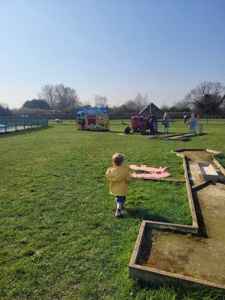 It’s not perfect. There are definitely some areas that could do with a bit of work… The rabbit enclosure was overgrown and deserted. There was a mini-golf course which had clearly been out of action for a while (but, actually, all the toddlers I could see were having a great time climbing on all the different obstacles and, to be honest, if you’ve ever tried to do mini-golf with an under-five you’ll know the removal of small, hard balls and hitting implements is, if anything, an improvement). The main playground was clearly undergoing some sort of refurbishment (but looked like it would be a lot of fun for my kids’ age range once up and running). I did ask in the shop when it might be back in action but the lady said she didn’t know (not unpleasantly, I might add, after reading some of the reviews about the LF staff I was expecting daggers at the very least.) The animals we did see appeared happy and well catered-for. The farm shop was much like most other farm shops I’ve been to. We bought our milk, some local ale for G and a couple of extortionate chicken kievs (which were definitely NOT worth it, sadly).