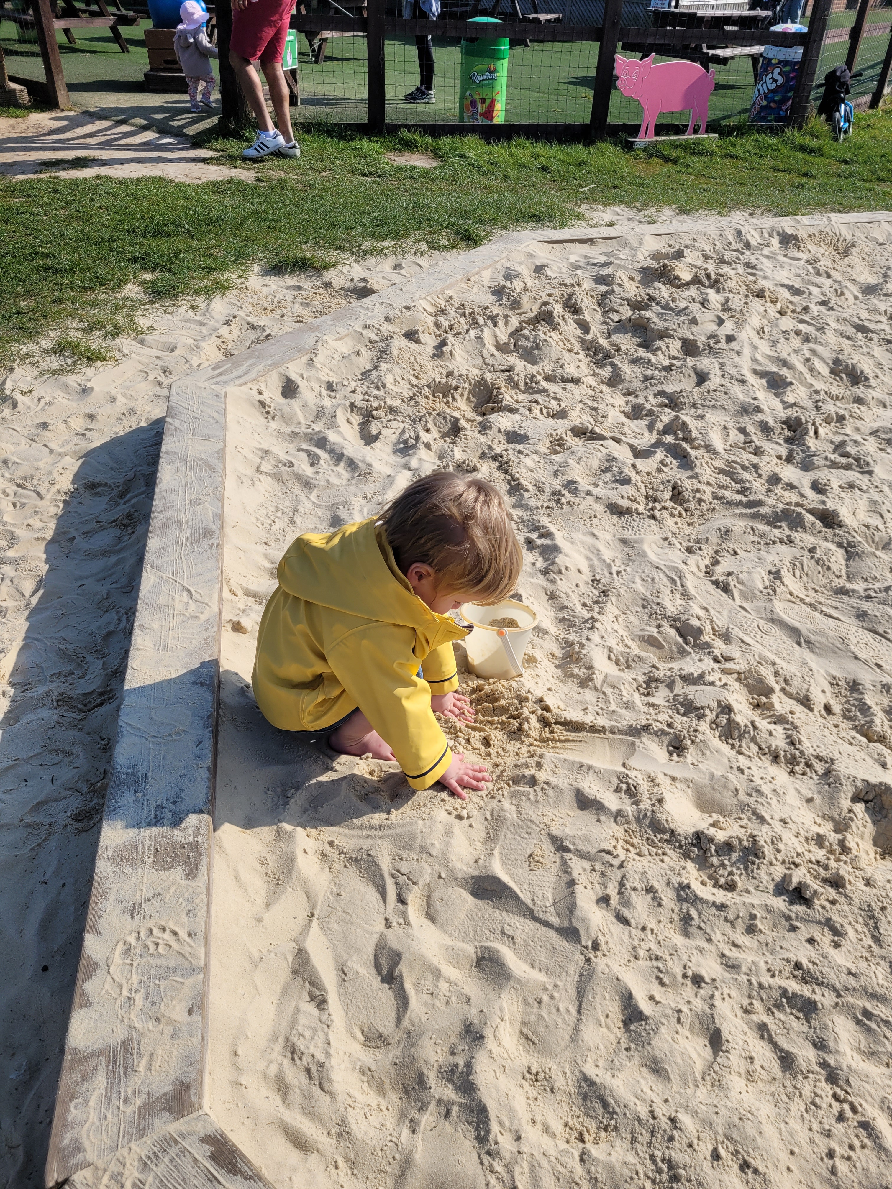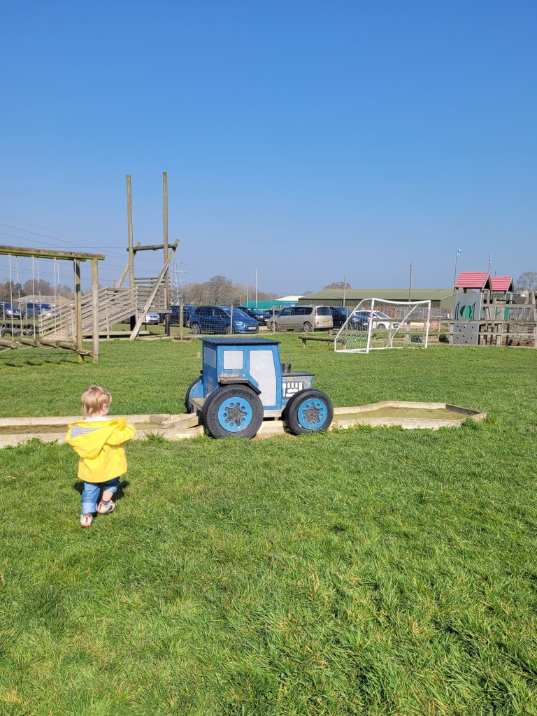 It sounds perfect on paper, but I have to admit I was a bit nervous about this one. I’d looked it up and read a few negative reviews on TripAdvisor and Facebook about the quality of the play equipment, run-down animal areas, staff rudeness and bad toilets. Nonetheless, I decided to give it a go, and actually I came away pretty impressed. Despite a few areas, including the main playground, being out of use, there was plenty to keep my toddler entertained and we ended up having a fantastic morning out. There was a large, clean sand-pit to dig in ‘like a doggy’. Two massive, inflatable pillows to bounce on. A large, ‘real life’ tractor to clamber all over. Farm animals to wave at. A little house to play in. Bigger-kid play equipment to insist upon trying (luckily nothing too heart-attacky). Not to mention plenty of open green space to generally run around and burn off energy. I have to admit we didn’t see an awful lot of the animals promised on the website and I’m not sure what happened to the whole meet-and-feed-them aspect, but there were spring lambs gamboling about, bleating and being all goddamn adorable.