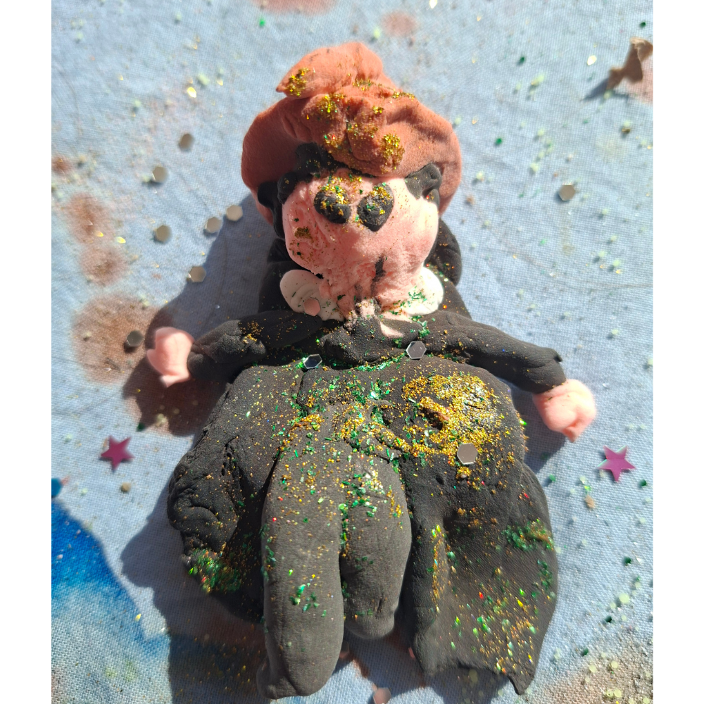 This is how I found myself kneeling on the cold, unforgiving tiles of our conservatory floor while the luminous air-dry clay slowly affixed itself onto the left knee of my favourite jeans. On one side stood A, bleating that her Harry kept keeling over into his sorting hat like a tiny, partially-air-dried-clay drunken boy wizard, while B wailed from my other side that someone, probably me, had trodden on his Mr Willy Wonka.