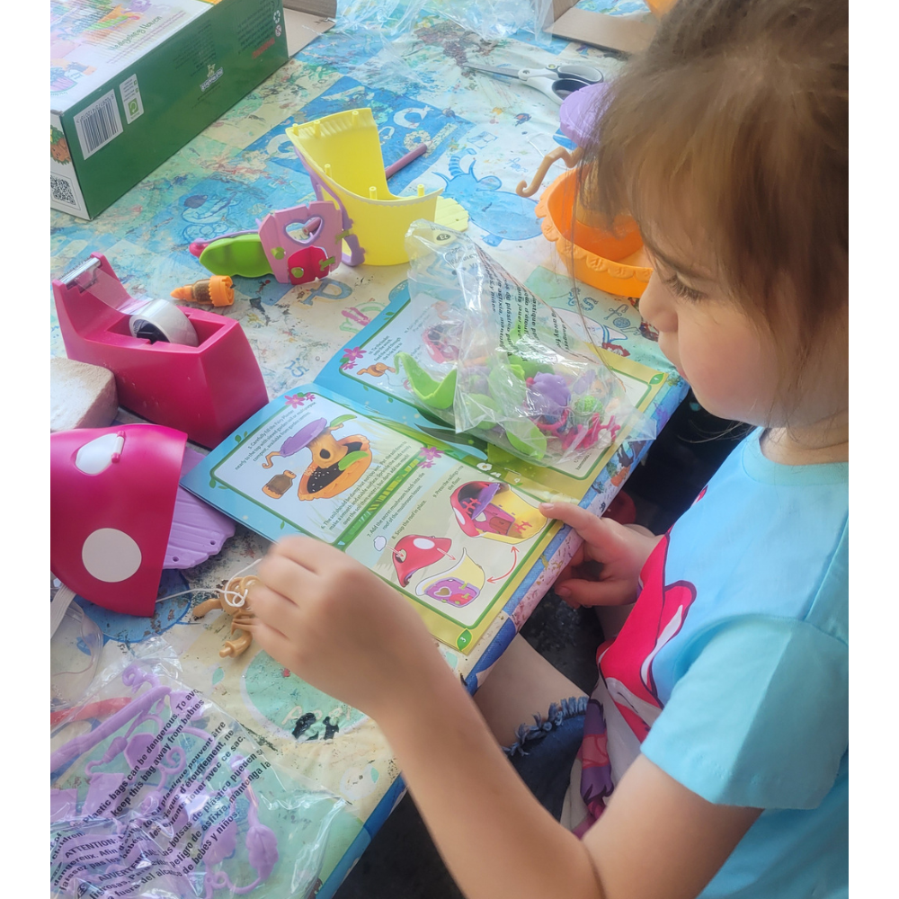 I like a tidy, contains-all-you-need, age-appropriate kit I can set them up with, perhaps lend a hand here or there but, for the most part, leave them to get on with it themselves. Some kits are like this – the paint-your-owns, the crystal arts, the dinosaur/fairy gardens and terrariums. All a delight.