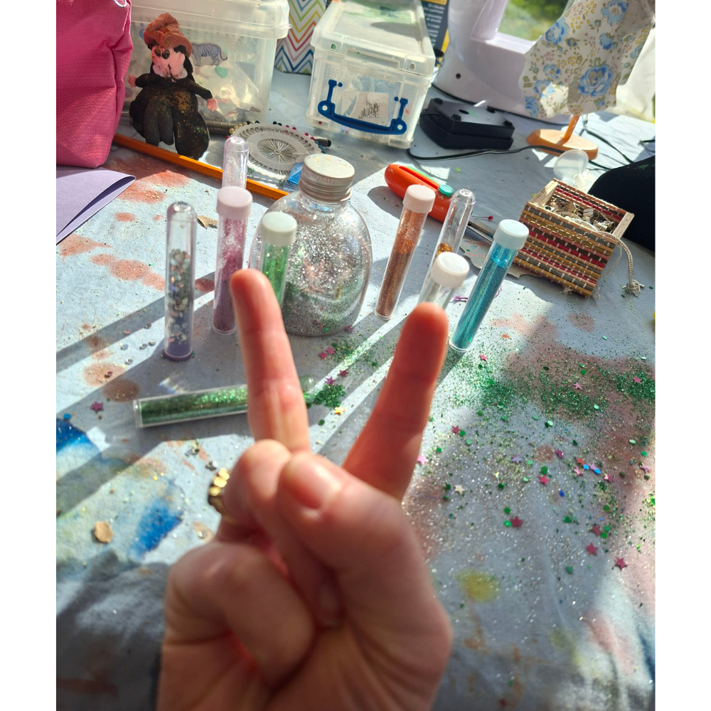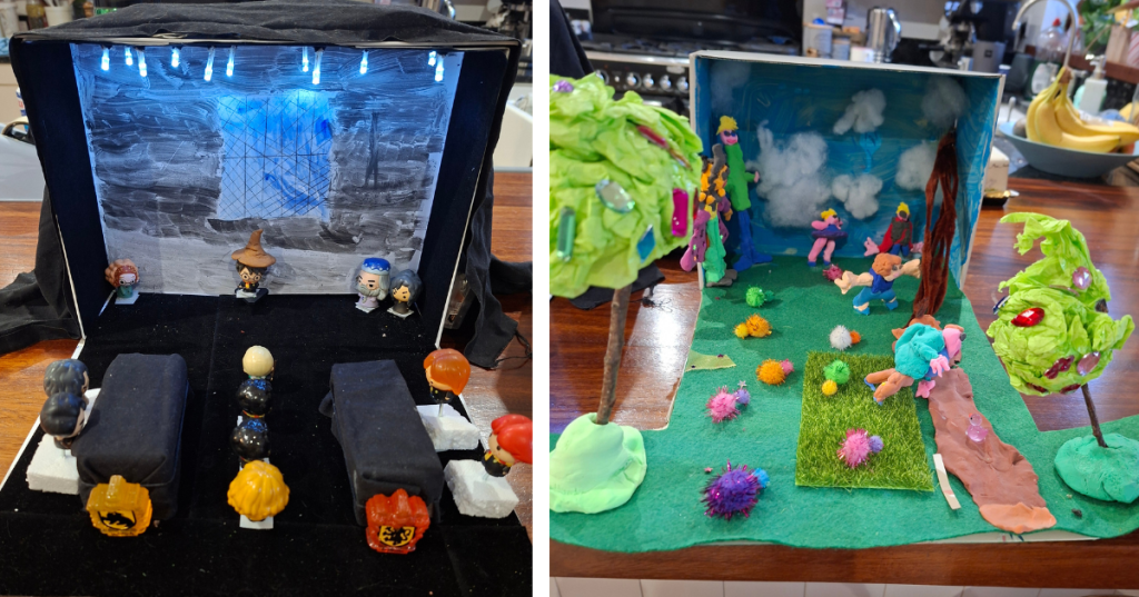 As for the tiny, wonky, glittery, drunken boy wizard? He still sits on the crafting table. As a warning of the perils of crafting? A momento of the super fun time we had making dioramas for World Book Day 2026? No. Because when I went to throw him away, I was intercepted and prevented by one small, sticky-handed boy and his immortal five words: “I can craft with that!”