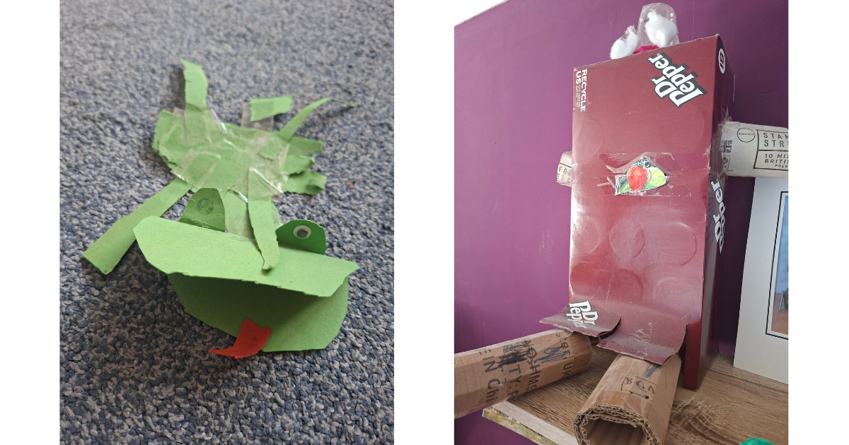 To give him his due, sometimes the things he produces are pretty cool – like the frog made mostly from sellotape and scraps of green paper when he was four, or the robot he made at school (any creation which involves turning a place that isn’t in my home into the aforementioned cesspit of hell is guaranteed to curry extra favour). And sometimes the things are less cool, as in barely graduated from the term they were originally salvaged from, being junk (if you’re being polite). Luckily he possesses an extraordinarily short term memory when it comes to the things he has lovingly crafted and presented me with and so I have made it almost seven years slyly siphoning off the less-brilliant creations in the name of recycling and the unending endeavour to Cut Down on All The F*cking Clutter.